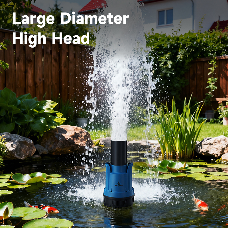- Large Diameter & High Head: Designed for robust water flow (massive flow rate) and impressive lift height, this pump keeps your pond water fresh, oxygenated, and crystal-clear—perfect for koi ponds, waterfalls, or large water features.